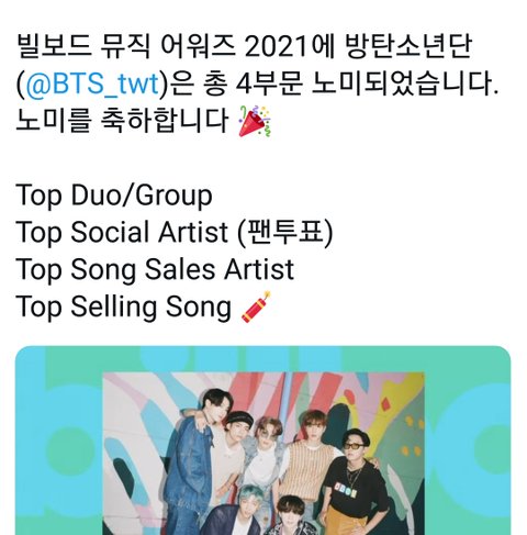 //2021 넬보드 시상식 방탄 4개부문 노미//