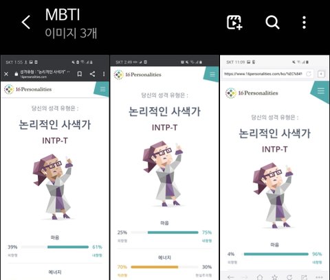 mbti 검사할때마다 조금씩 사회성 길러서 내향 96에서 61로 발전함