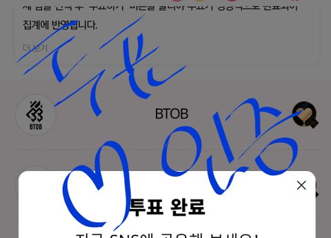 지난번에 스밍 도와주신 것도 감사하구 일주일동안 돌려주시고 인증하러 와주신거 너무 감사해서 보은 왔어요! 왕덤 영상 뜰때마다 비투비 영상은 항상 챙겨보고 있는데 진짜 너무 잘하시더라구요..역시 믿고 보고 듣는 비투비!!투표 언제 뜨나 기다리고 있었는데 마침 떴길래 투표 박고 왔습니다!너무 감사하구 남은 경연도 화이팅 하시길 바래요:)응원하고 있겠습니당❤