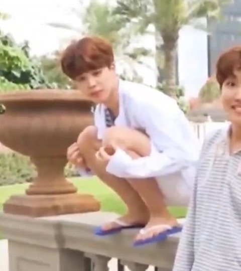 쪼그려 앉는 지민이 짤 털이 간다(귀여움 주의)