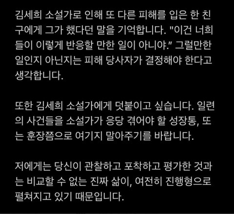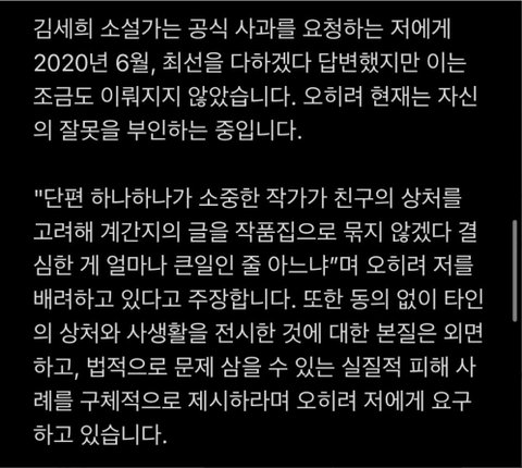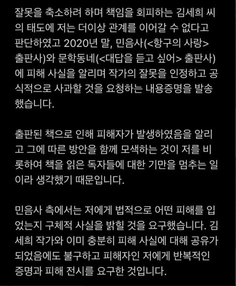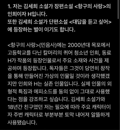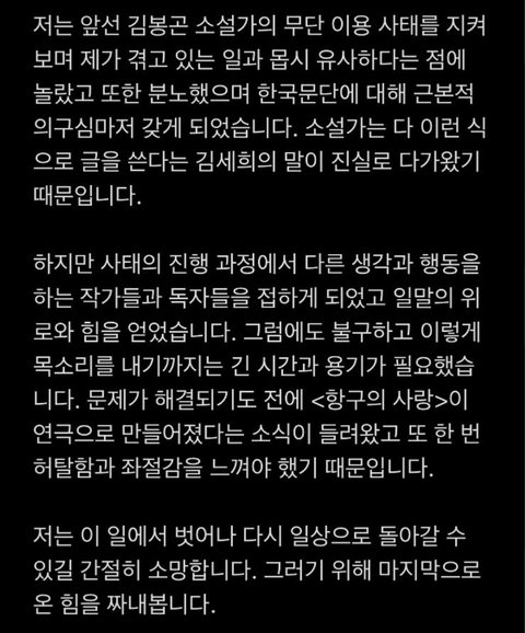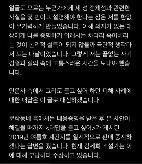 이후 발표된 민음사의 입장문(https://twitter.com/minumsa_books/status/1386127385855094784?s=20)과 김세희 작가의 입장문(http://news.naver.com/main/read.nhn?mode=LSD&mid=sec&sid1=001&oid=018&aid=0004912550)도 참고하여 주세요 !