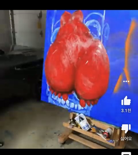 팬들 미친건가? 그냥 딱봐도 보이는게 -뒤에 배경으로 파란색 험상궂은 남자 얼굴 , 그와 대비되는빨간색 여자 팔다리,얼굴은 아무것도 없는 중요부위만 그린(가슴 엉덩이 발가락) 그림인데.....이게 안이상하다고???????제정신이니????????