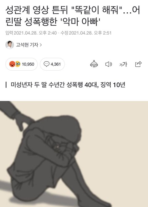 야동 보면서 7,8세 두 딸 성폭행한 아빠
