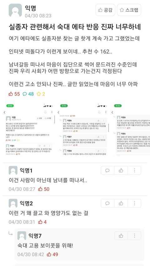 대다수가 동조하는 숙명여대 에타글이랑 다르게