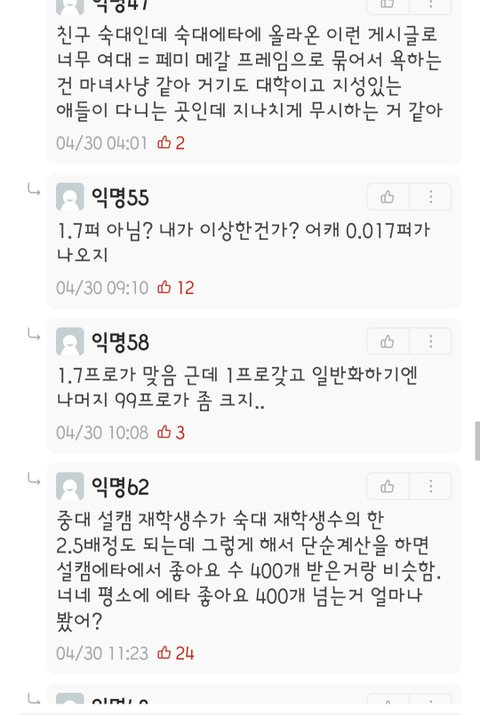 (숙대 에타 "한남인 척 쓴 댓글들")
