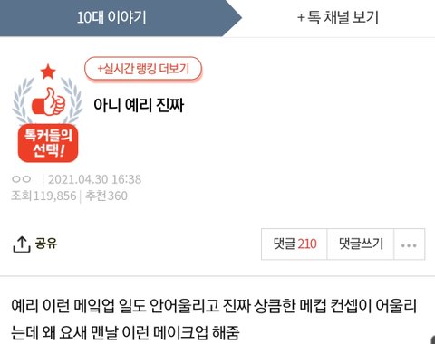 메이크업 안어울린다 얼평 몸평인데 엔터가라는 베플 한개도 없음