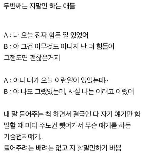 또 내가(쓰니) 뭐 잘한다 그러면 자기 친구가 그걸 더 잘한다 어쩐다 저쩐다 얘기하는데 좀 짜증...;;