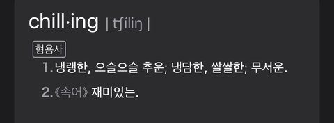 칠링이 내가 아는 뜻이랑 스엠이 미는 뜻이랑 다른가? 칠링 나는 즐거운, 재미있는인 줄 알았는데 스엠이 미는 건 무서운, 으스스 한 이쪽인가