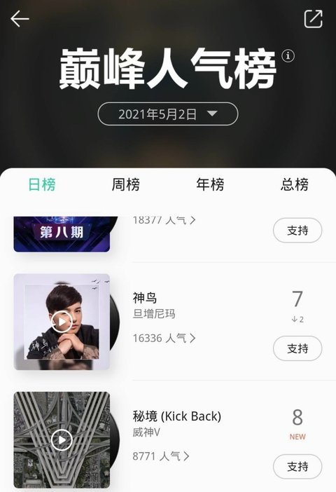 qq뮤직차트 킥백 새로 올라왔다