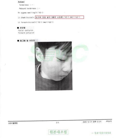 병원에 해당 타박상 관련 내용에 관해 수사를 한적이 없다고 하더라고요........