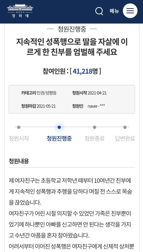 지금 청원하고 있는데 이거 본 사람은 청원 부탁해
