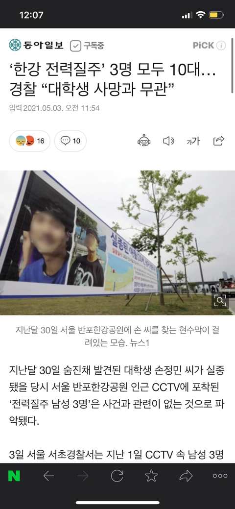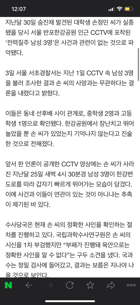 한강 CCTV 의대생 사건이랑은 무관하대
