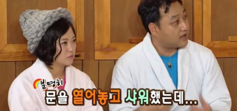김숙은 샤워할 때 문을 열어놓고 샤워를 했는데..