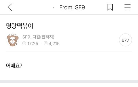 평소에 다원이는 뭐 맛있는지 어떤지를 자주 물어보는데 오늘은 명랑떡볶이(?)가 어떤 지 물어봄