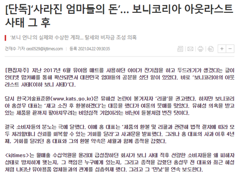 [단독]‘사라진 엄마들의 돈’… B사 아웃라스트 사태 그 후https://www.kjtimes.com/news/article.html?no=70325
