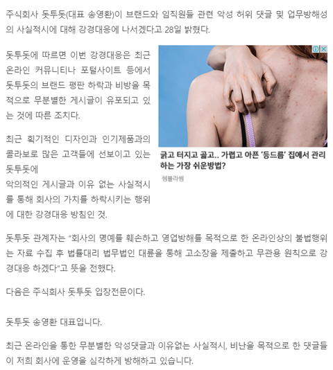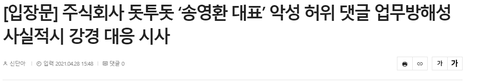 [입장문] 주식회사 D사 ‘S 대표’ 악성 허위 댓글 업무방해성 사실적시 강경 대응 시사http://www.nbntv.co.kr/news/articleView.html?idxno=925561
