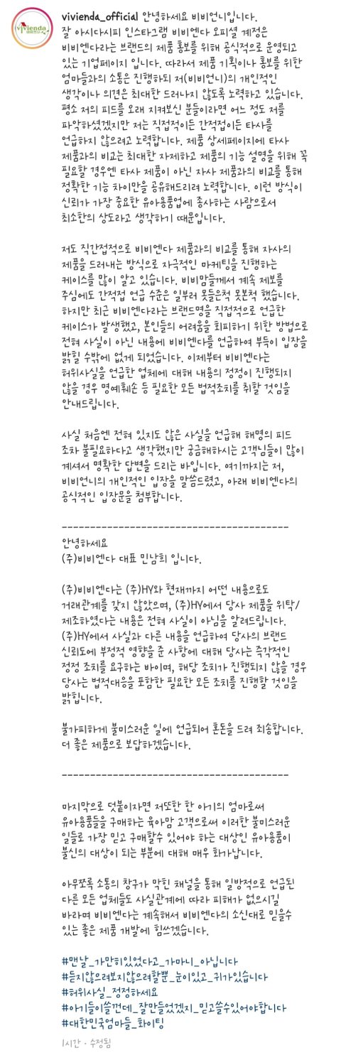 5/2 비비앤다 입장문https://www.instagram.com/p/COXxoPuHmNj/?igshid=e1r9nyypmaml.