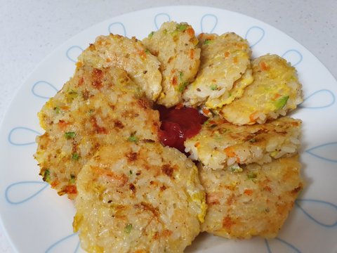 밥전. 유아기때 종종 해줬는데 지금은 밥하기 귀찮고 볶음밥 소재가 고갈되었을 때 가끔씩 때우는 음식