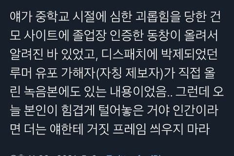 전부 루머였고 그 동창들이 금전갈취 목적으로 허위사실 유포에 카톡 등 증거 조작한거 인정하고 사과함