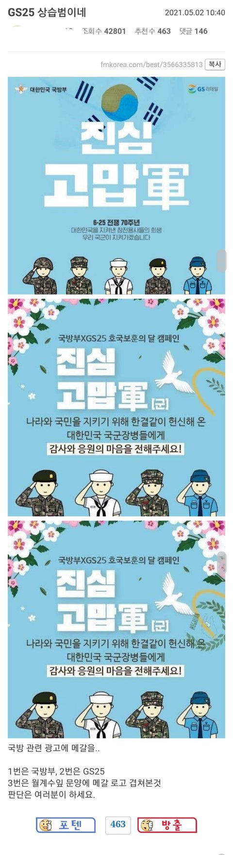 인데 군인관련 포스터에 무궁화, 월계수 비둘기가 들어가는게 뭐가 이상함?