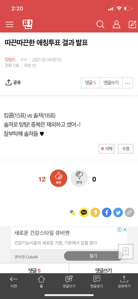 우리 팬덤명 후보중에 킹콩말고 솔져도 있었음. 지금 보니 쪼까 민망쓰