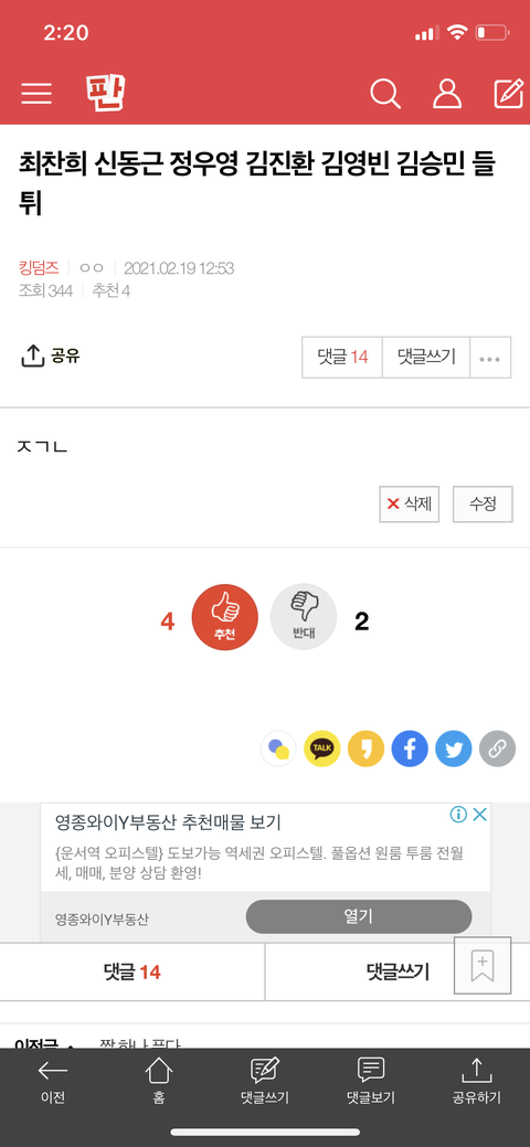 이때는 다들 어색해서 그런가 몇몇 킹콩이들 반대 안누르고 추천 눌러줌ㅋㅋㅋㅋㅋㅋㅋㅋㅋㅋ 지금은 사정없이 반대 눌리겠지..?