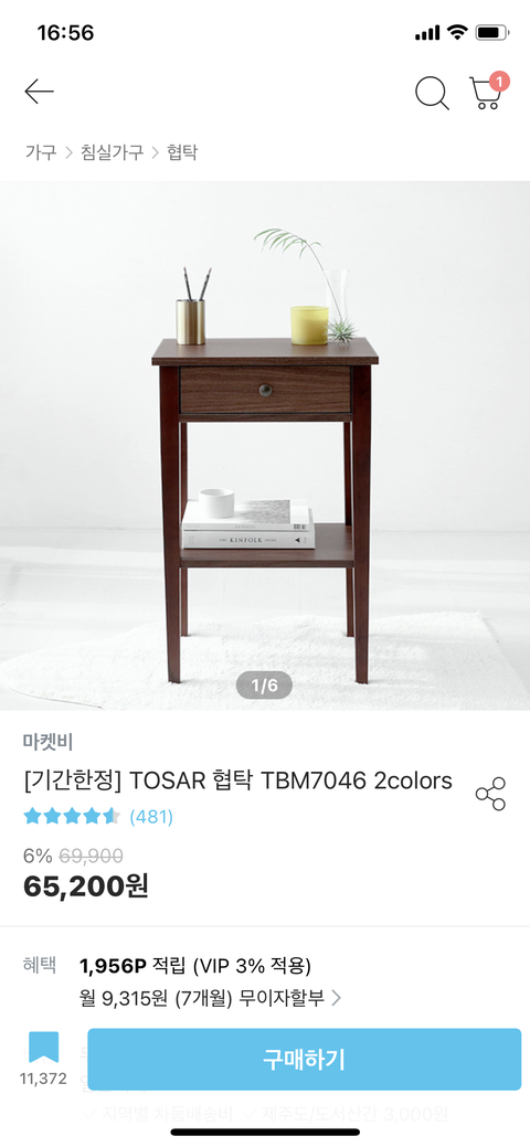 (협탁은 하나에 6만원이고 두 개 사서 12만원이에요)
