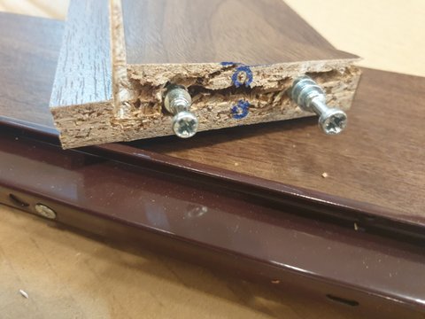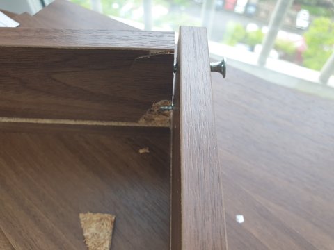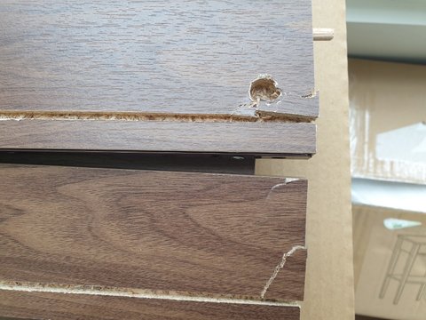 주문하고 며칠 지나고 더러운 박스에 배달되어 왔고, 엄마가 조립하시다가 나사 하나를 잘못 끼우긴 하셨는데 그대로 나무 합판이 부숴져버렸어요.