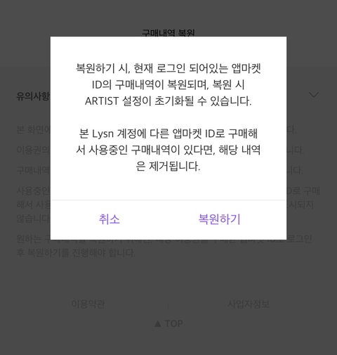 기존 3인권에서 1인권 추가결제했는데 멤버선택하는게 안 떠서 구매내역 복원 눌렀는데 이게 떴거든?? 이거 복원하기 눌러도 되는거겠지? 날짜 안사라지겠지?