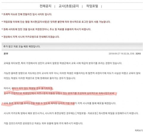 제어가 안되는 학생은 교사가 직접 왕따분위기를 주도해서 심리적으로 압박하라는데?학교에서 학생들한테 꼽주고 왕따로 몰아가는 선생들 이 메뉴얼대로 하고있던거 아니야? 개소름;;