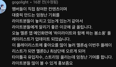 멜론에 아이디 만들어서 하이라이트 플리에 좋아요 눌러