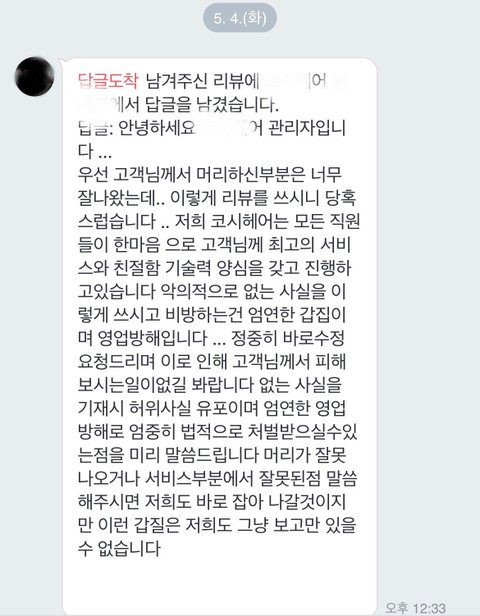직원교육은 다시 하겠으니 재방문해달라 그러니 지워달라?
