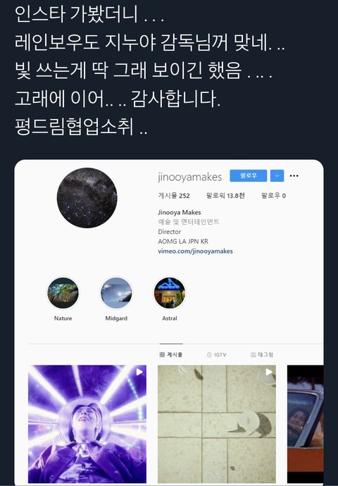 고래랑 책갈피 같은 감독님(make a wish, go, hiahway to heaven 등등 많은 뮤비들 찍으신 감독님임)