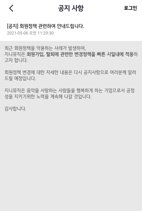 우리도 문제 인지해서 계속 문의넣었는데 드디어 공지떴네 다행이다ㅠ 벅스도 탈다하는곳 있던데 이왕 이렇게 된거 벅스까지 문의 같이넣자 막히면 모두 다 편하자나❤