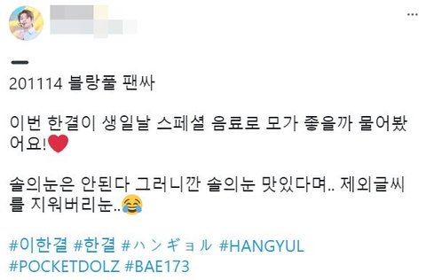 솔의눈 음료 관계자분들..한결이 적극 추천합니다ㅋㅋㅋㅋㅋㅋㅋㅋㅋㅋㅋㅋㅋㅋㅋㅋㅋㅋㅋㅋㅋ