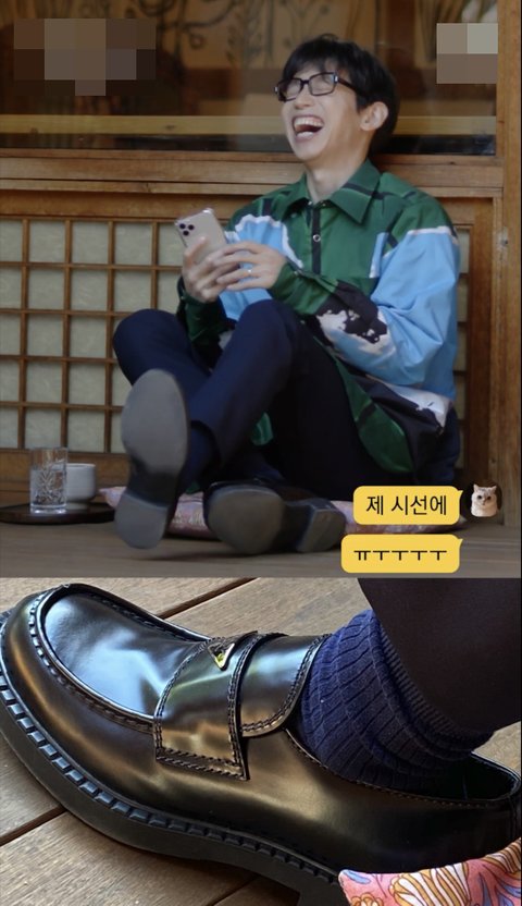 김이나가 자신의 시선으로 본 봉태규의 신발 사진을 찍어서 보내는데