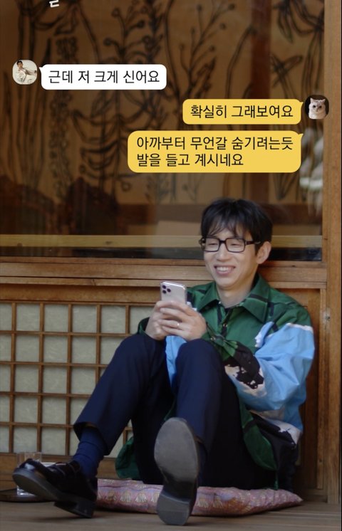 아까부터 무언가를 숨기려는 듯 발을 숨기고 있다고 하니까ㅋㅋ