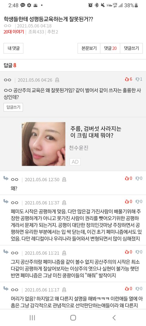 페미로 둔갑한 사회.공산주의가 우리 사회곳곳에서 새어나오고있어