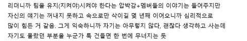 리더들은 항상 자기가 대표로 욕먹는 일이 있더라도 다른 멤버들은 욕먹으면 안되고,