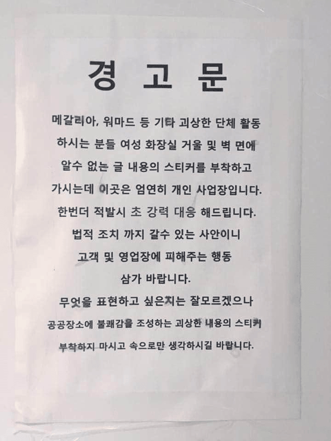 ++말도 안되는 메갈 논리에는 공식사과에 점주들에게 사과문까지 돌렸으면서 된장각이란 문구에는 공식사과없이 넘어갔다??!?!