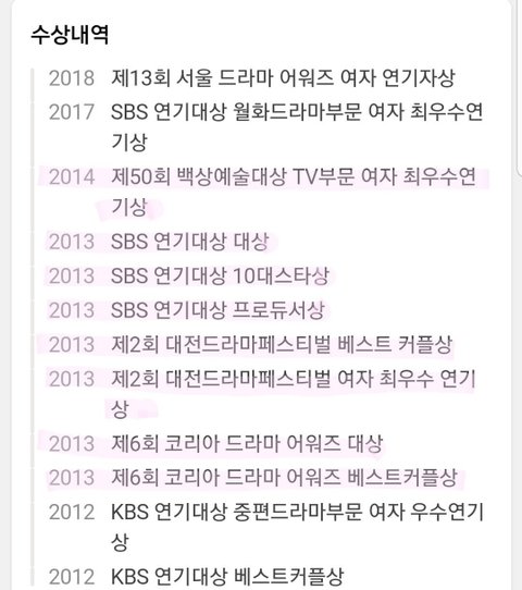 분홍색이 모두 너목들로받은상