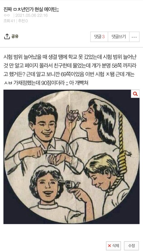 시험범위 바뀐걸 하루 얘기하고 그 뒤로는 언급 안하는 학교가 세상에 어딨노 개주작