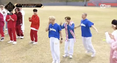 은광 비주얼 공동 4위하고 사진 찍을 때 머리에 올라간 줄(?) 내려주려고 바로 달려오는 프니엘