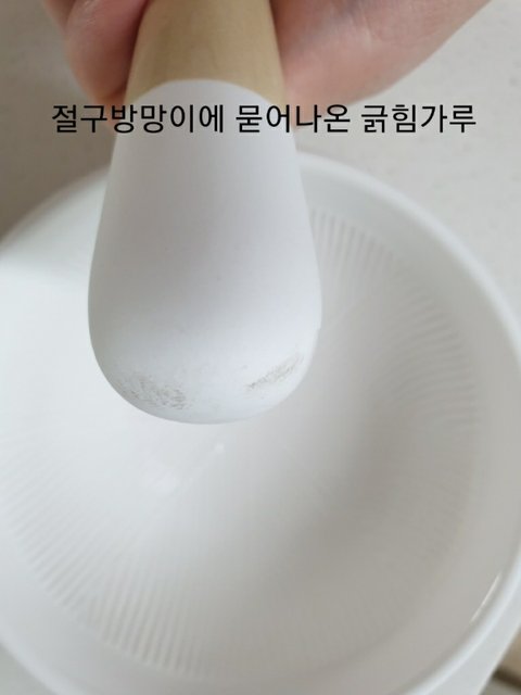 하지만 며칠만의 제 이런 결심은 두고두고 후회하게 되는 일이 생겼습니다. 해당 제품을 통해 직접 쌀미음을 이틀가량 먹인 후 재료를 더 곱게 가려고 힘을 주는 과정에서 절구 내부가 긁히는 현상을 목격하게 된 거죠...