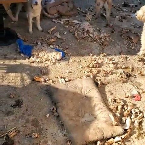 ▶ 음식쓰레기, 이상한 족발뼈같은거 줏어와서 개들에게 먹임(30마리전후)