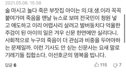 한강의대생이랑 동갑인사람 죽었대