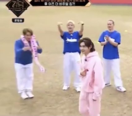 창빈님 잡고 있았는데 필릭스님 이름이 불려서 괜히 민망+축하의 감정으로 싱글벙글 중인 프니엘님