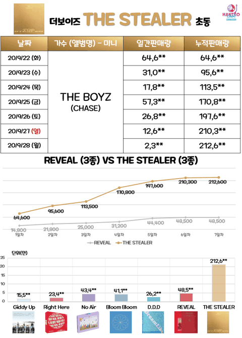 가장 최근 앨범: The Stealer (2020.09.22 발매) 212,6**장