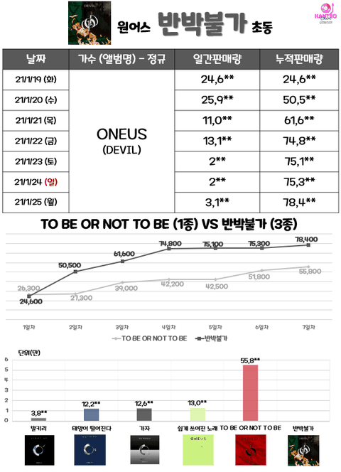 가장 최근 앨범: 반박불가(2021.01.19 발매) 78,4**장