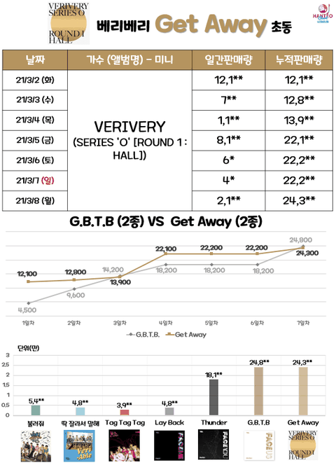 가장 최근 앨범: Get away(2021.03.02 발매) 24,3**장